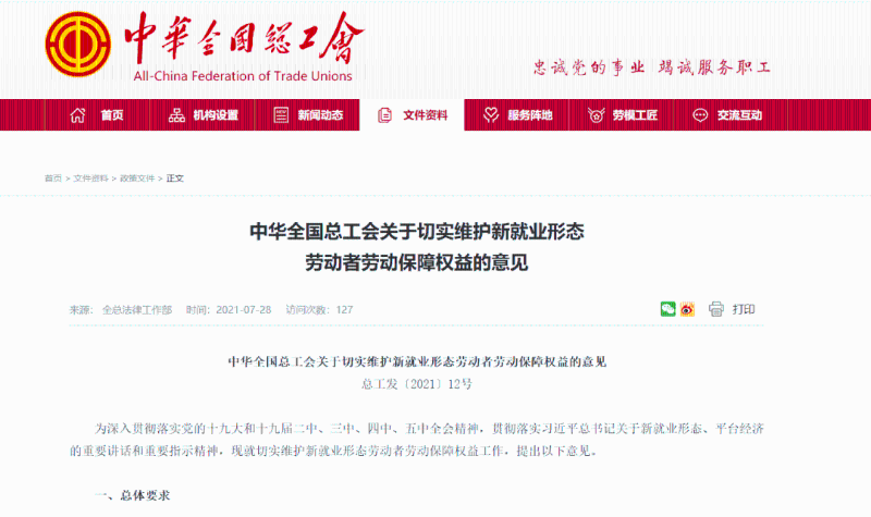近日,中华全国总工会发布了