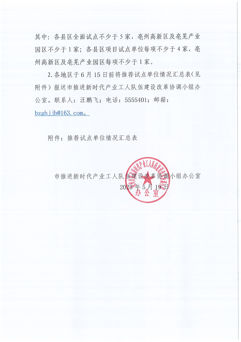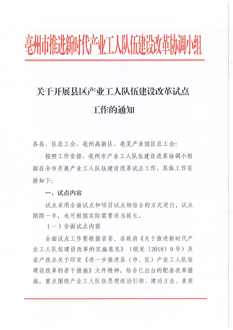 亳州市推进新时代产业工人队伍建设改革协调小组