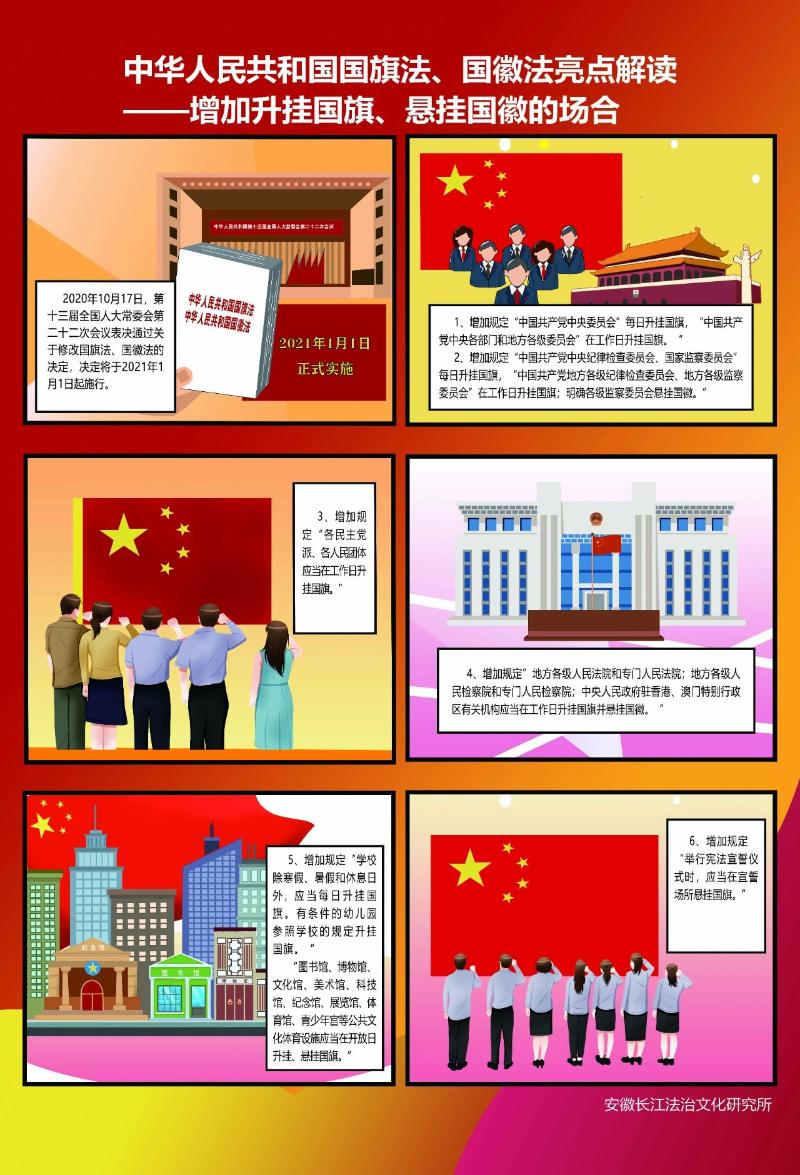 十三届全国人大常委会第二十二次会议表决通过关于修改国旗法、国徽法的决定,决定于2021年1月1日起施行。