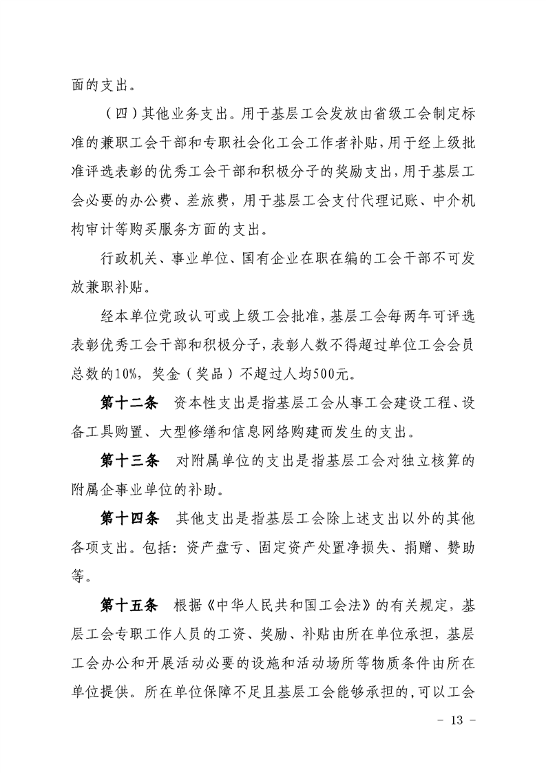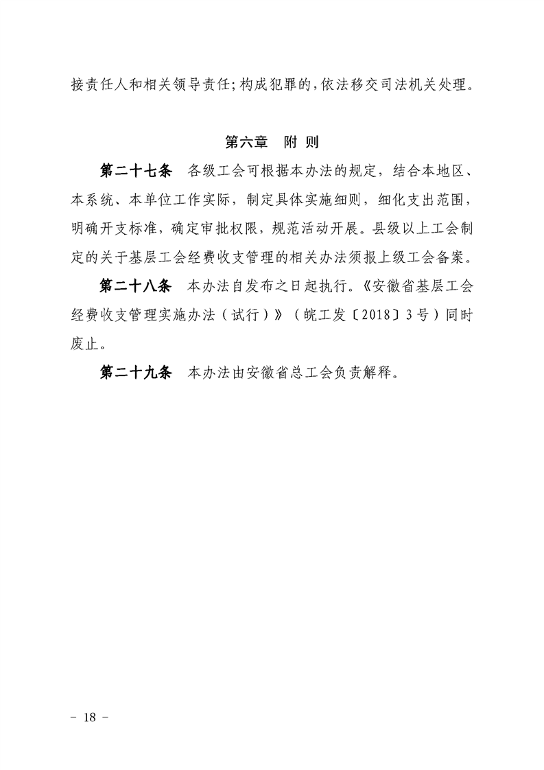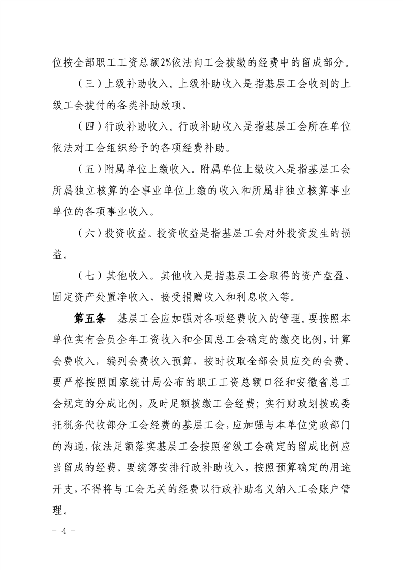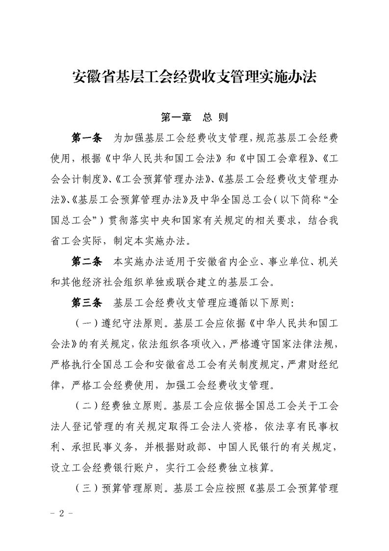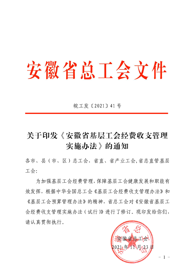 关于印发《安徽省基层工会经费收支管理实施办法》的通知